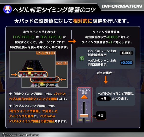 GITADORA -ARENA MODEL-においてソフトバージョン2025120201以降に追加された「ペダルの判定タイミング調整」について詳細は画像をご確認ください。